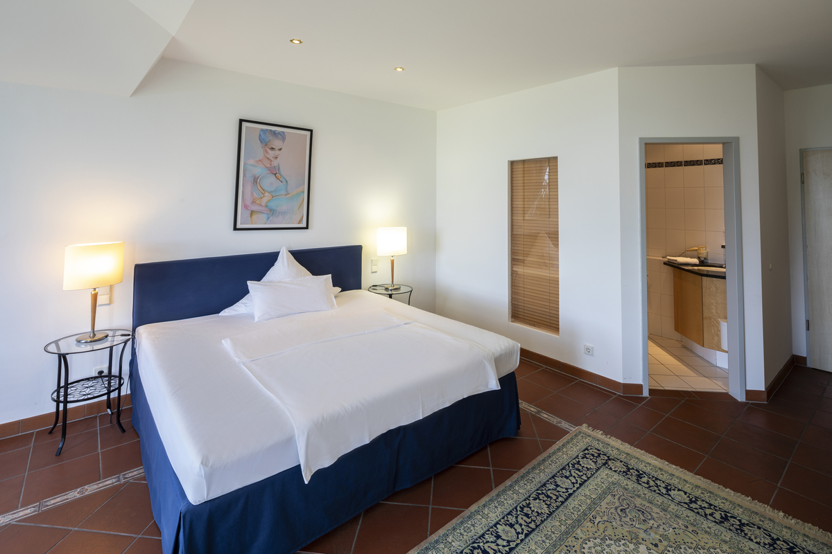 • Großes Doppelbett, Schreibtisch und gemütlicher Sitzbereich
