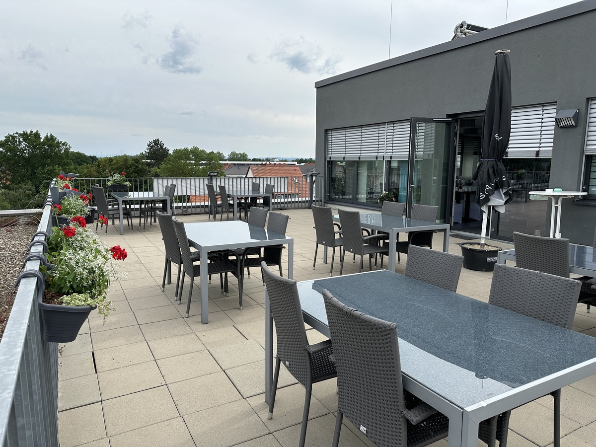 Unser Veranstaltungsraum befindet sich im 3. Stock und ist barrierefrei über den Fahrstuhl erreichbar. Parkmöglichkeiten stehen in unserer Tiefgarage zur Verfügung. Zusätzlich bietet eine Terrasse die Möglichkeit für Pausen im Freien.