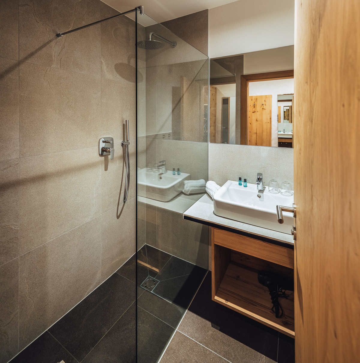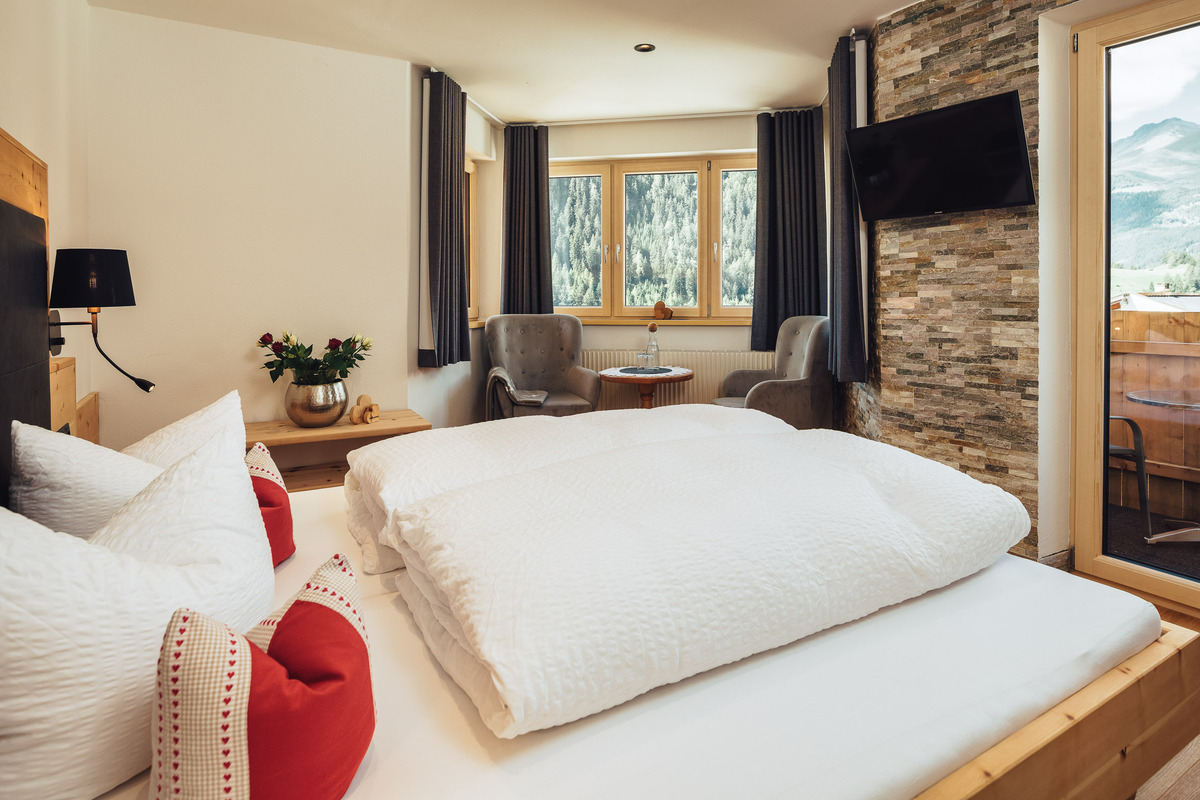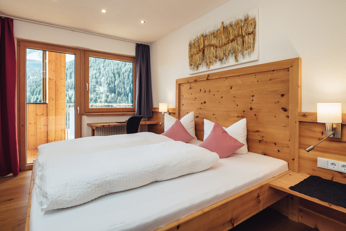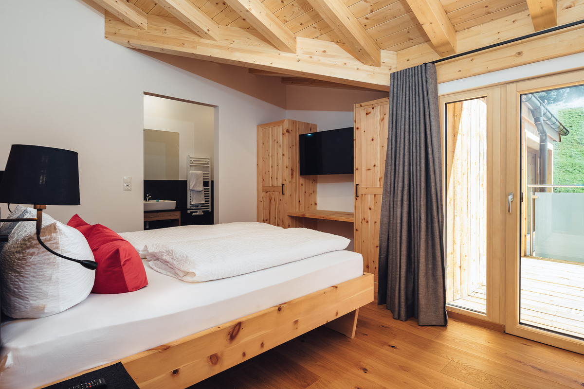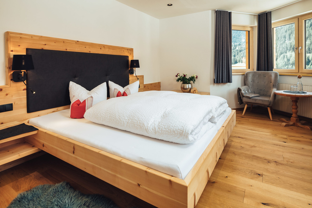 Wunderschön, modern reduziert und doch behaglich, lichtdurchflutete Doppelzimmer mit traditionellen Zirbenholz, herrlichem Duft und modernem Komfort. Dazu den Panoramablick mit bester Aussicht auf die umliegenden Berge.
