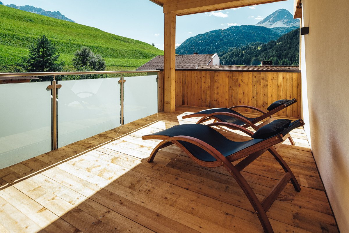 Den Panoramablick genießen. Frische Bergluft einatmen. Umgeben von natürlichen Farben und heimischen Materialien. Großzügigkeit und Komfort für einen Urlaub mit Familie oder Freunden. Umgeben von der traumhaften Bergwelt.